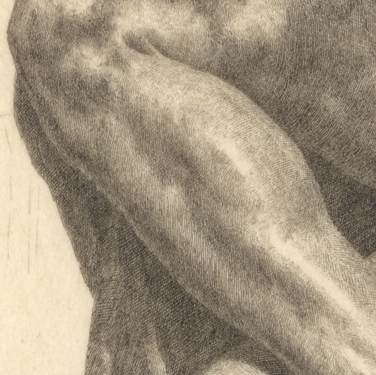 this delicate engraving is Michelangelo’s famous marble figure of “Dusk”